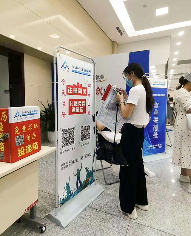 除參展企業(yè)外,招聘會(huì)入口還設(shè)有求職咨詢(xún)臺(tái),引導(dǎo)求職人員利用江西人才招聘網(wǎng)(dxshch.cn)線上注冊(cè)、投遞簡(jiǎn)歷,助力求職者更快找到心儀的工作。未能即時(shí)參與現(xiàn)場(chǎng)招聘會(huì)的朋友,也可登錄江西人才招聘網(wǎng)(dxshch.cn)查看單位、崗位信息。