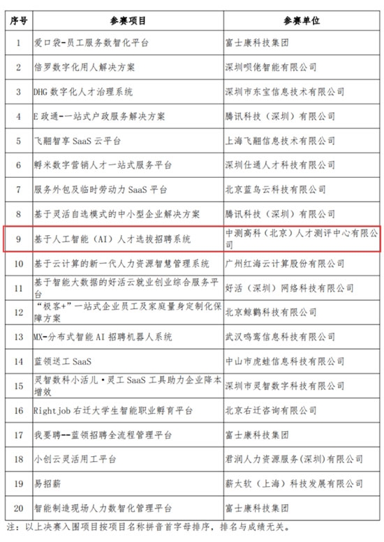 1228日,由深圳市人力資源和社會(huì)保障局主辦的2021(深圳)人力資源科技大賽決賽”在廣東·深圳成功舉辦。中測高科(北京)人才測評中心創(chuàng)新項(xiàng)目“基于人工智能(AI)人才選拔招聘系統(tǒng)”榮獲大賽三等獎(jiǎng)!