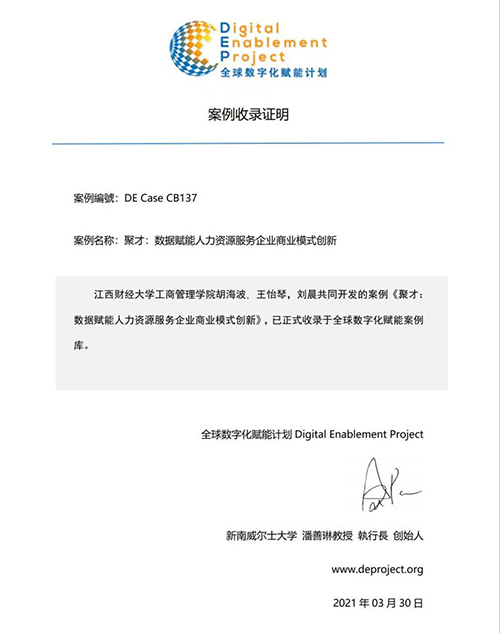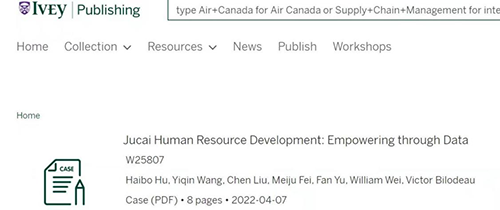 近日,以數(shù)據(jù)賦能為研究樣本,題為《Jucai Human Resource Development: Empowering through Data》(譯名:《聚才:數(shù)據(jù)賦能人力資源服務企業(yè)商業(yè)模式創(chuàng)新》)的英文案例正式收錄于國際著名案例機構(gòu)——毅偉案例庫(Ivey Publishing),并將作為商科教學案例在全球出版發(fā)行。