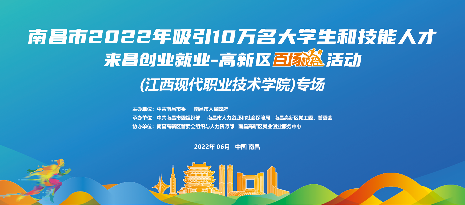 為貫徹中央人才工作會議精神,落實南昌市第十二次黨代會的要求,依據(jù)《南昌市十萬大學生和技能人才來昌留昌創(chuàng)業(yè)就業(yè)工作實施方案》,決定開展南昌市“百場 校招”活動,定于2021年11月8日至2021年12月7日,組織30-40家企業(yè)開展線上雙選活動,重點引進緊缺急需的江西現(xiàn)代職業(yè)技術學院2022屆優(yōu)秀畢業(yè)生。